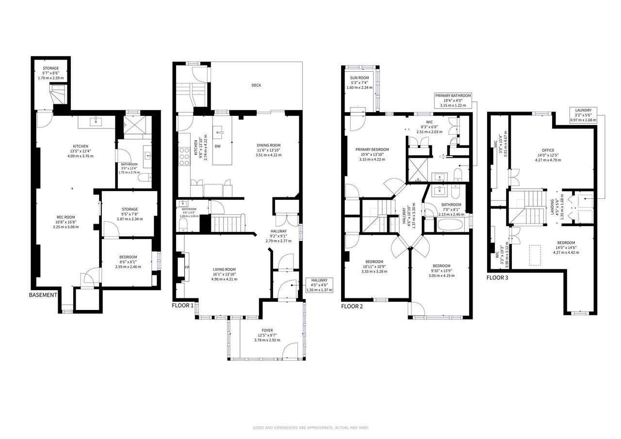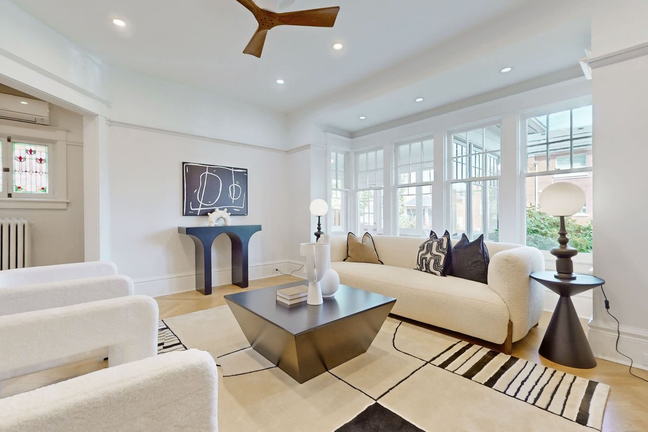 Bright And Wide Oversized 25" Semi Edwardian Century Home Feels Like A Detached Home! Upgraded And Renovated , Classic And Modern, Open Concept And Functional. Main Floor Boost Sun Drenched Living Room And Open Concept Kitchen, Chef Graded 6 Burner Gas Stove With Brass Pot Filler, Custom Kitchen Cabinets With Ton Of Storage, High End Ceramic Countertop And Oversized Kitchen Island. Built In Pantry In Dinning Room W/O To The Backyard. Powder Room Tucked Under Staircase. Enclosed Front Porch With B/I Bench Seat Storage. Second Floor Boosts Three Generous Sized Brs, Prime BR With Adjacent Sitting Room, W/I Closet And Ensuite 3PC Bath. Third Floor Includes Laundry Room And Two More Bedrooms Set Up For Home Office Play Room With Independent Air Con. Separate Entrance To Finished Basement , Three PC Washroom , Wet Bar And Extra Bedroom. Above Average Home Inspection Report Upon Request. Highly Sought After Elementary School Catchment.