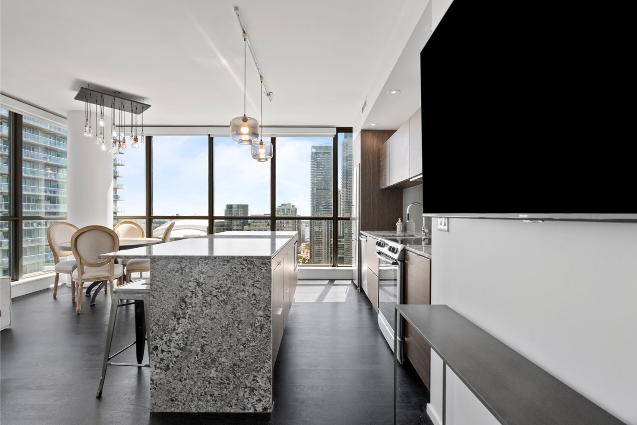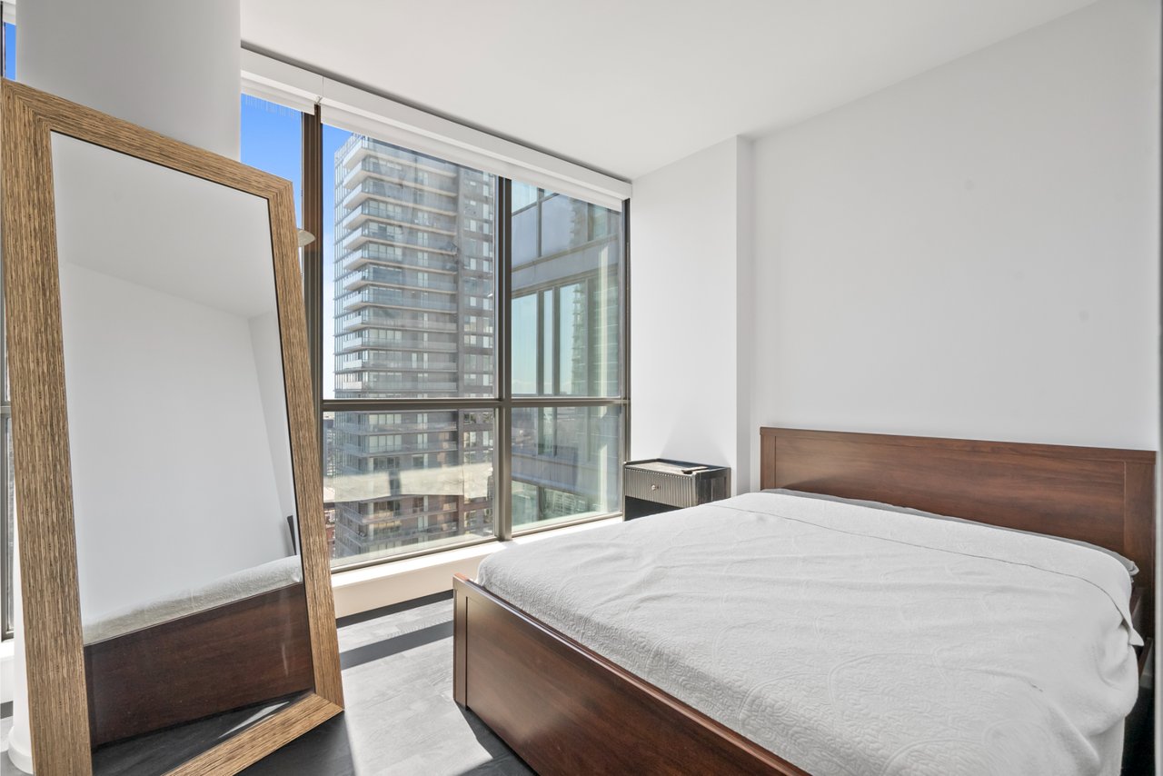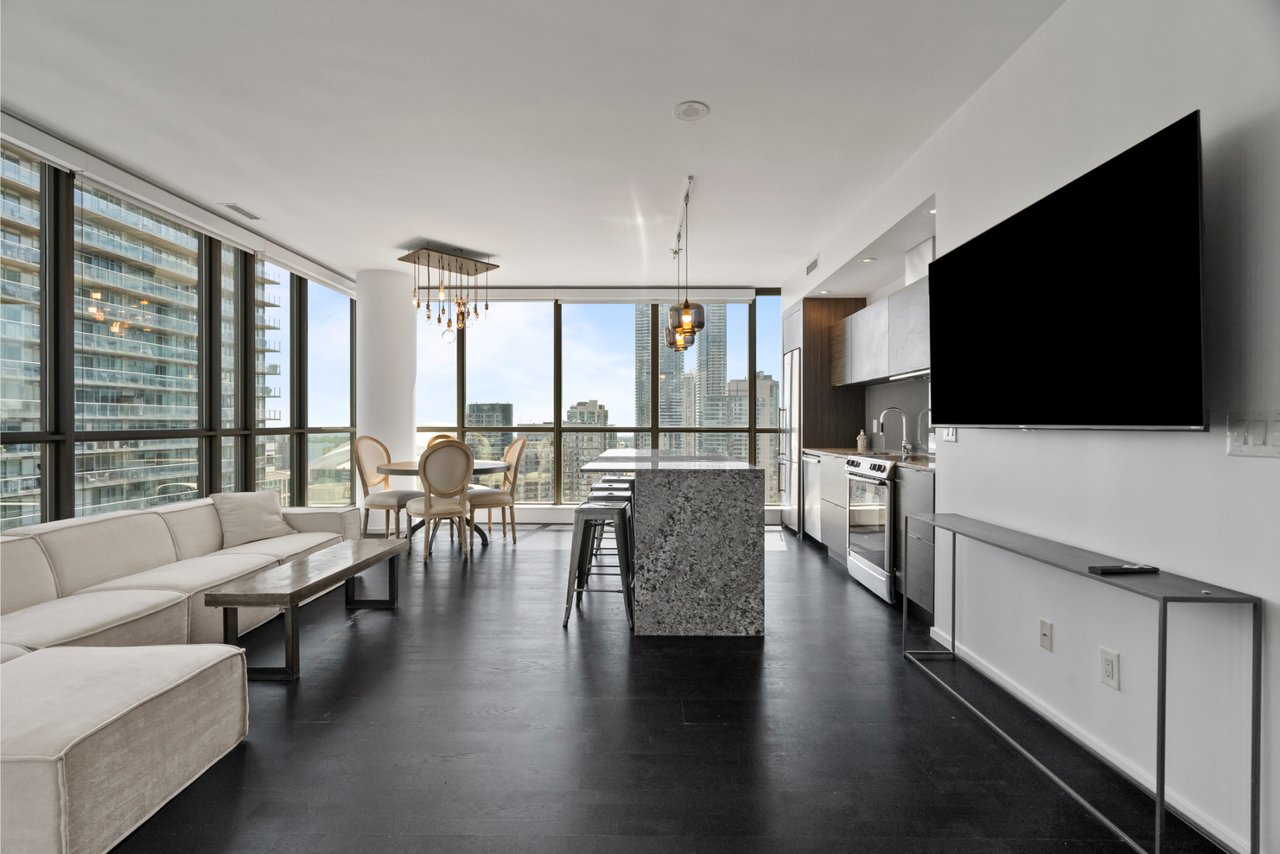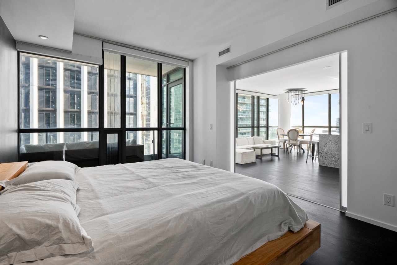 Located in the heart of the city at King & Spadina, this stunning fully furnished two-bedroom corner suite offers just over 1000 sq. ft. of thoughtfully designed living space with a desirable split-bedroom layout. Large south-east facing windows flood the space with natural light, while a private balcony provides the perfect spot for outdoor enjoyment. A custom floor plan combines the second bedroom with the den, creating an oversized bedroom that comfortably accommodates a king-size bed and features custom closet organizers for exceptional storage. The suite also includes a spacious kitchen with a large island, wood floors throughout, and recently updated bathrooms. Residents enjoy an excellent selection of amenities, including a concierge, fitness centre, party room, lounge, and terrace with BBQs. An outdoor pool is currently under construction and will be a welcome addition. Perfectly situated in the core of the city, This Property Offers Unmatched Proximity to Public Transit, Financial District, Entertainment District, And the Lively Neighbourhoods of King and Queen West, With Easy Access to The Gardiner Expressway. Experience Toronto's Finest Restaurants, Theatre, Shopping, And Vibrant City Life Right at Your Doorstep! Unit is freshly painted!