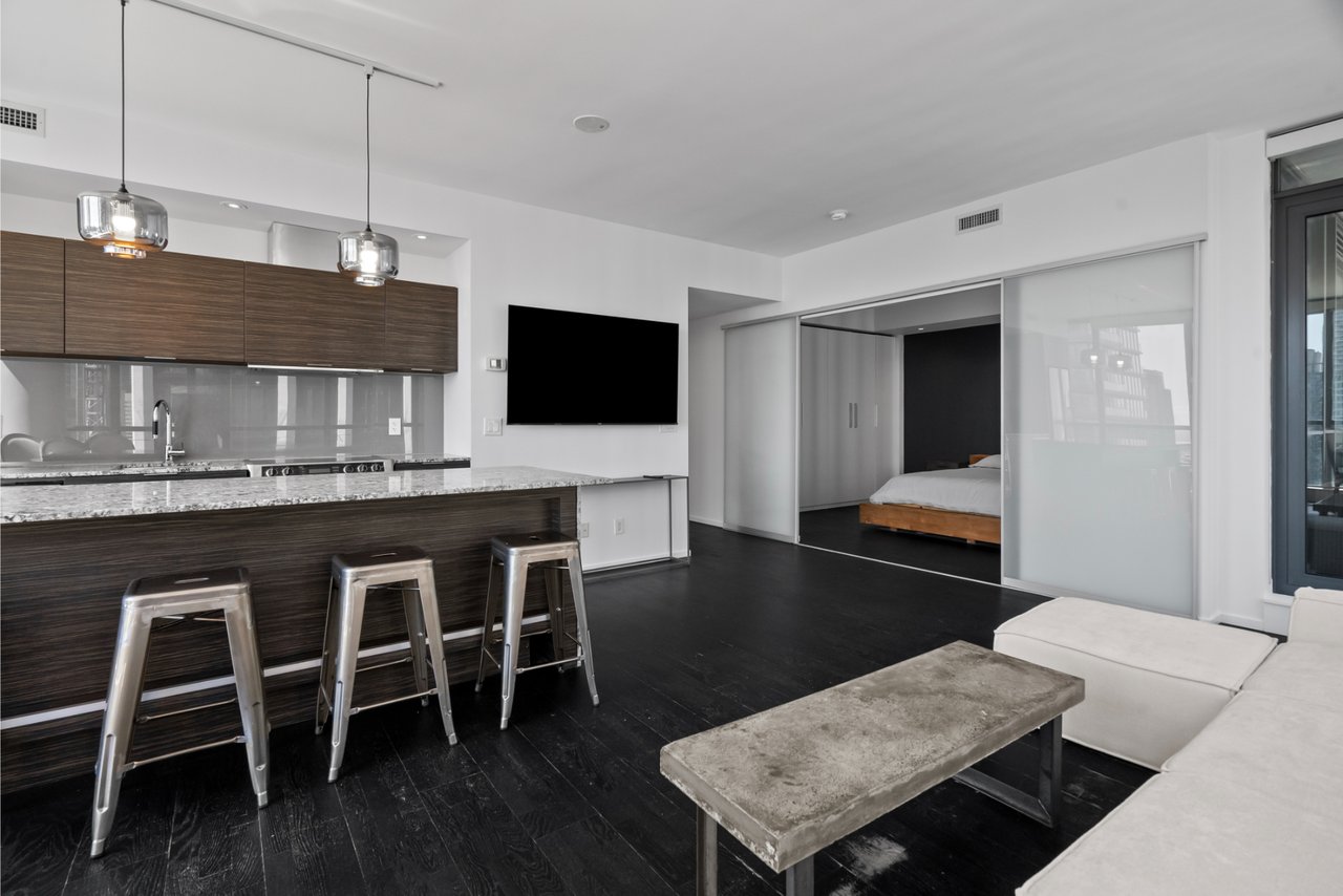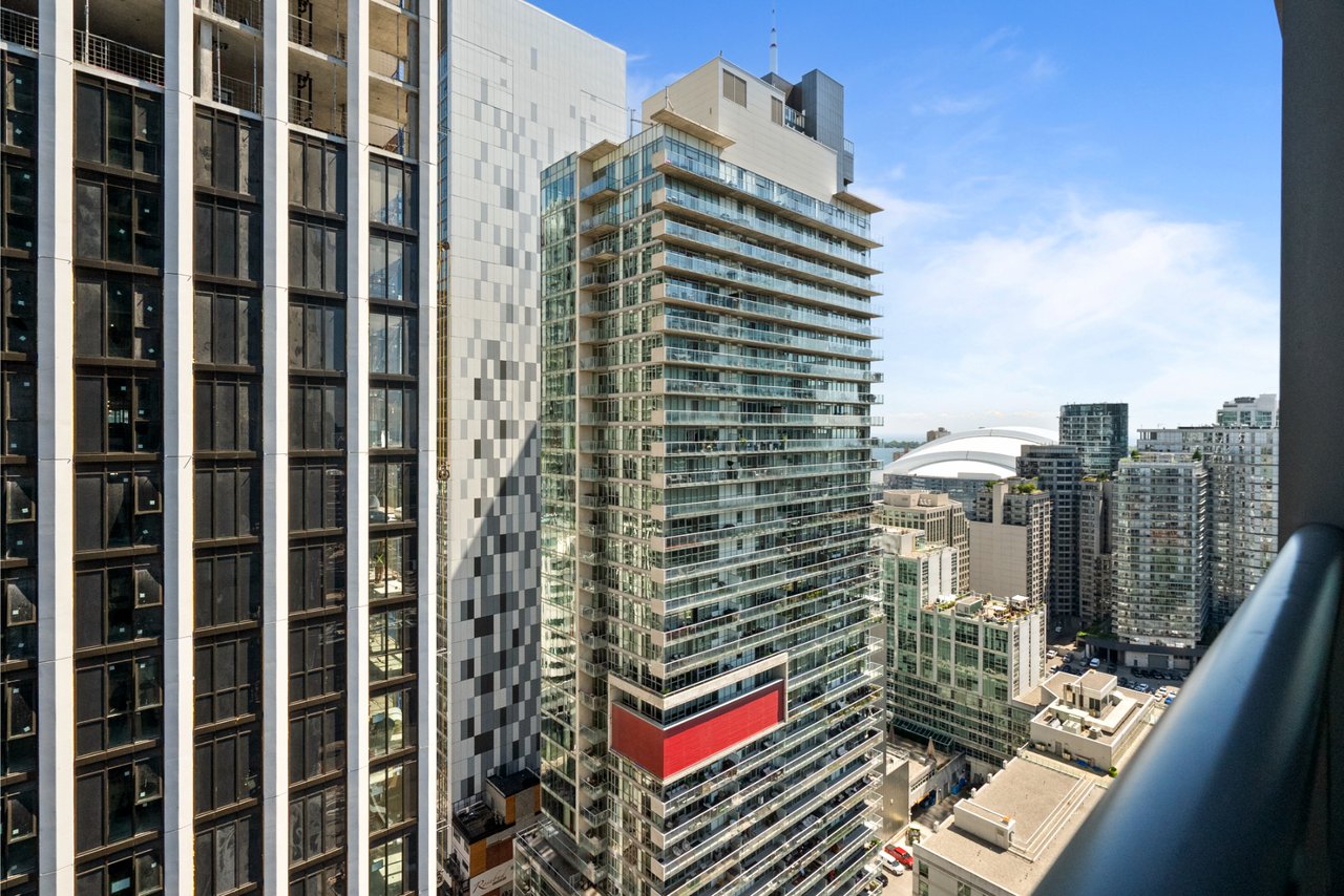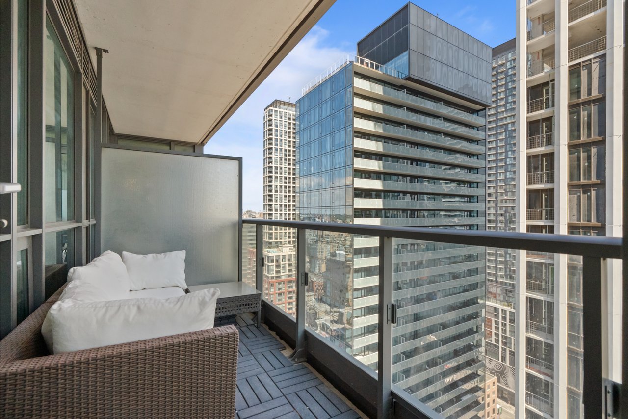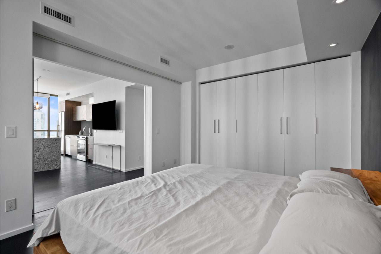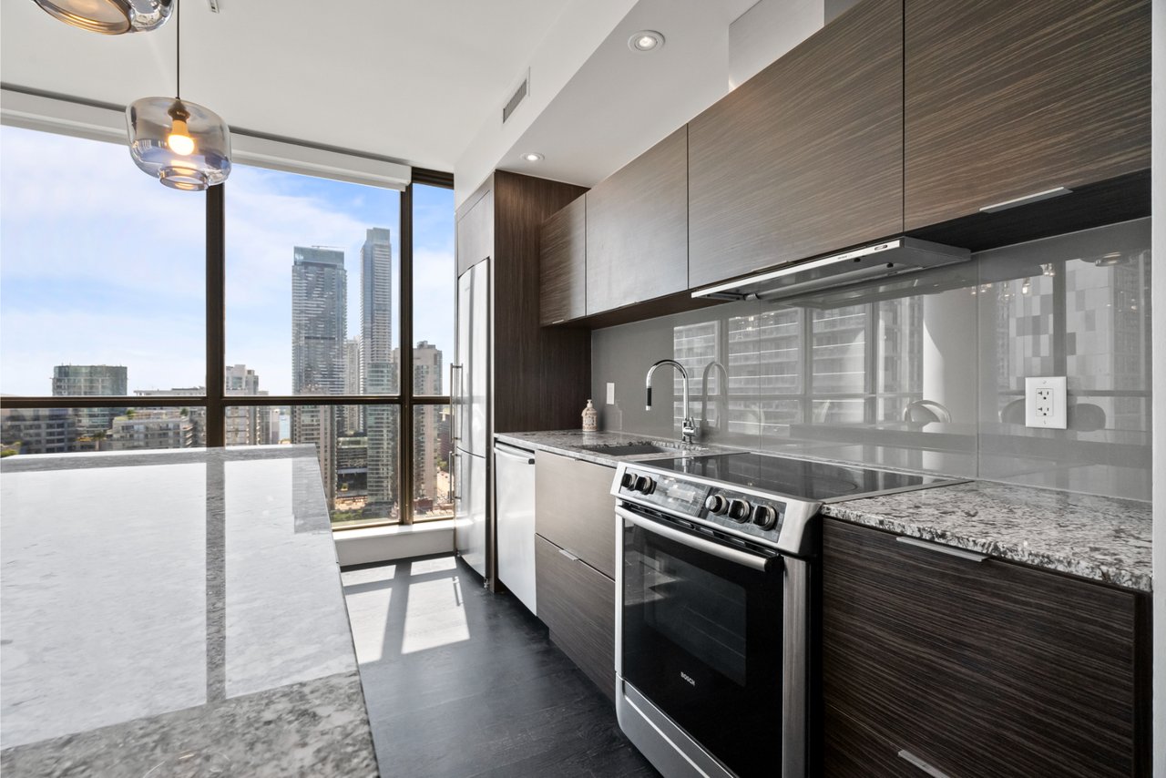 Located in the heart of the city at King & Spadina, this stunning fully furnished two-bedroom corner suite offers just over 1000 sq. ft. of thoughtfully designed living space with a desirable split-bedroom layout. Large south-east facing windows flood the space with natural light, while a private balcony provides the perfect spot for outdoor enjoyment. A custom floor plan combines the second bedroom with the den, creating an oversized bedroom that comfortably accommodates a king-size bed and features custom closet organizers for exceptional storage. The suite also includes a spacious kitchen with a large island, wood floors throughout, and recently updated bathrooms. Residents enjoy an excellent selection of amenities, including a concierge, fitness centre, party room, lounge, and terrace with BBQs. An outdoor pool is currently under construction and will be a welcome addition. Perfectly situated in the core of the city, This Property Offers Unmatched Proximity to Public Transit, Financial District, Entertainment District, And the Lively Neighbourhoods of King and Queen West, With Easy Access to The Gardiner Expressway. Experience Toronto's Finest Restaurants, Theatre, Shopping, And Vibrant City Life Right at Your Doorstep! Unit is freshly painted!