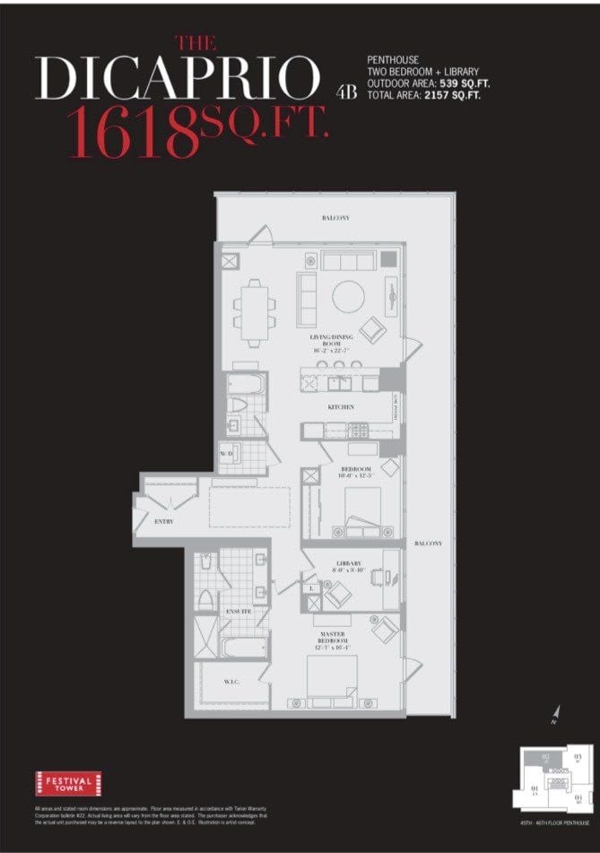 Stunning Penthouse In Renowned 'Festival Tower' - 3 Bedroom & 2 Full Bathrooms Spanning Over 1,618 Sf. Corner Suite W/ Open Concept Principle Rooms Offers Soaring 11Ft Ceilings & Floor To Ceiling Windows. Enjoy Multiple Walk Outs To The 539 Sf Wrap Around Balcony. Primary Bedroom Retreat Boasts Walk-In Custom Closet & Spa-Like 6Pc. Ensuite. Chefs Kitchen W/ Full Miele Appliance Package & Large Island! Steps From King West & Financial Core. All Light Fixtures & Window Coverings Incl. Miele Appliances: B/I Fridge, Dishwasher, Stove W/ Gas Cook Top, Range, Speed Oven, B/I Coffee Maker. Full Sized Washer & Dryer. 1 Parking & 1 Locker. 24Hr Conc., Fitness Centre, Pool + Much More!