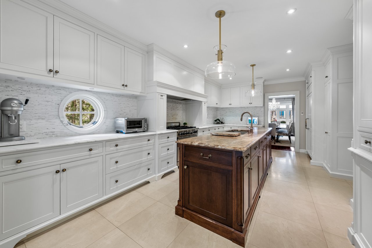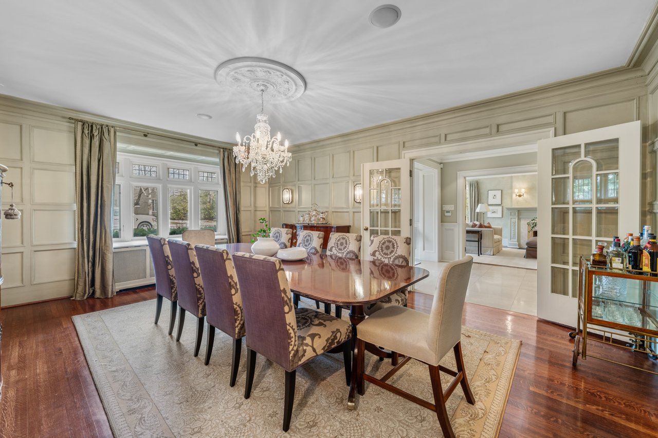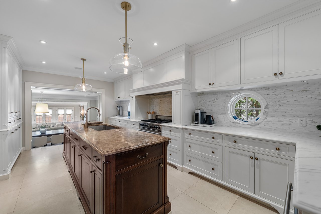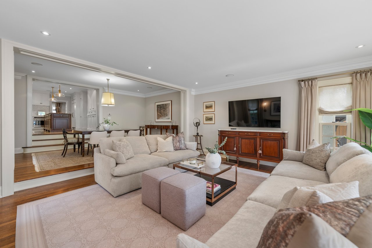 Situated on a prime 60.04 x 138.66 ft lot in one of Toronto's most sought-after neighbourhoods, this elegant and spacious home offers exceptional scale, comfort, and functionality. Featuring a 7-car driveway and 2-car garage with direct interior access, this residence is ideal for growing families and entertaining. A grand foyer welcomes you into beautifully proportioned principal rooms. The formal living room features rich hardwood flooring, large windows, and a wood-burning fireplace, with double glass doors for added privacy. The formal dining room showcases classic panelled walls and connects seamlessly to the kitchen-perfect for hosting. The chef-inspired kitchen is equipped with Sub-Zero paneled fridge/freezer, Wolf 6-burner gas stove and wall oven, and a large centre island with ample storage. A bright breakfast area overlooks the backyard and flows into the sunken family room with hardwood floors and three French doors opening to a private outdoor retreat with dining and lounge areas. The main floor also includes a mudroom with garage and side entrance access, a powder room, and generous storage. The lower level offers a spacious recreation room, 3-piece bathroom, large laundry room, and multiple storage areas. A unique half-level Great Room with soaring ceilings, panelled walls, and a walk-out to a large private terrace provides additional living and entertaining space. The upper levels feature well-appointed bedrooms, including a primary retreat with extensive built-ins, walk-in closet, and 5-piece ensuite. Additional bedrooms offer custom storage, with one featuring its own ensuite, plus a shared family bath. The third floor includes a versatile sitting area, bedroom, home office, and 3-piece bathroom. A rare opportunity to own a refined family home in the heart of Forest Hill, close to top rated schools, parks, and amenities.