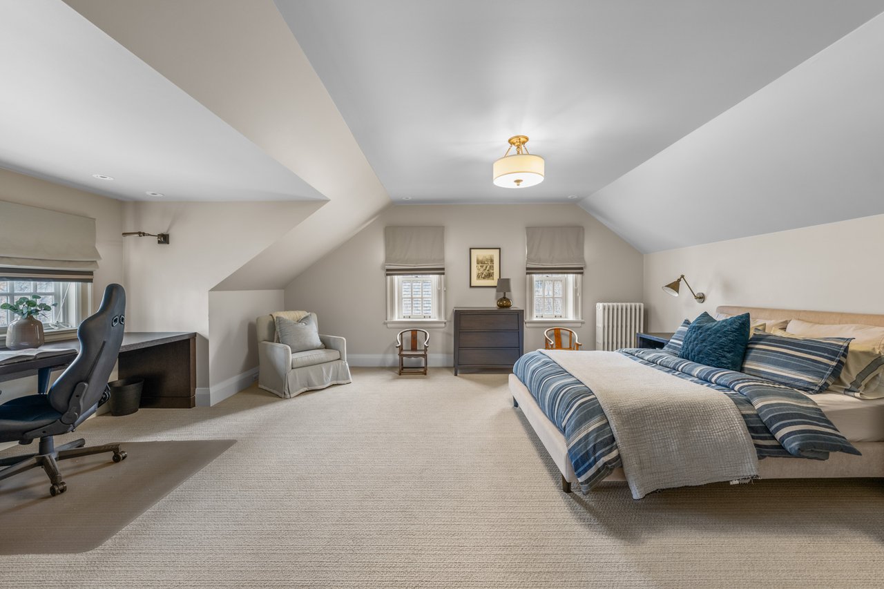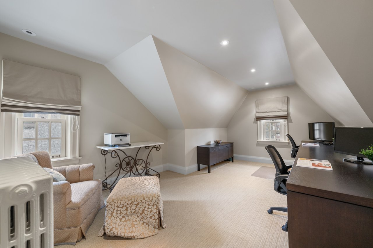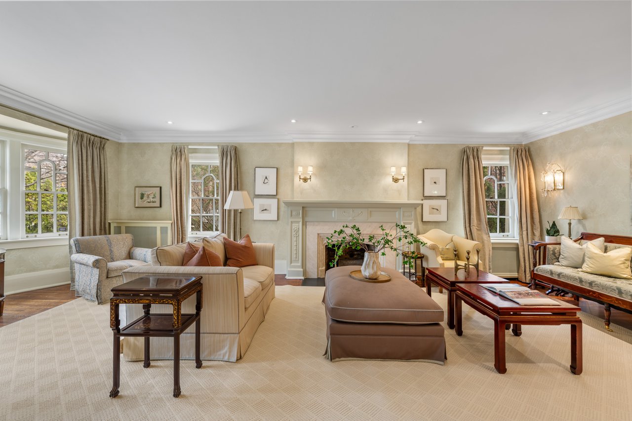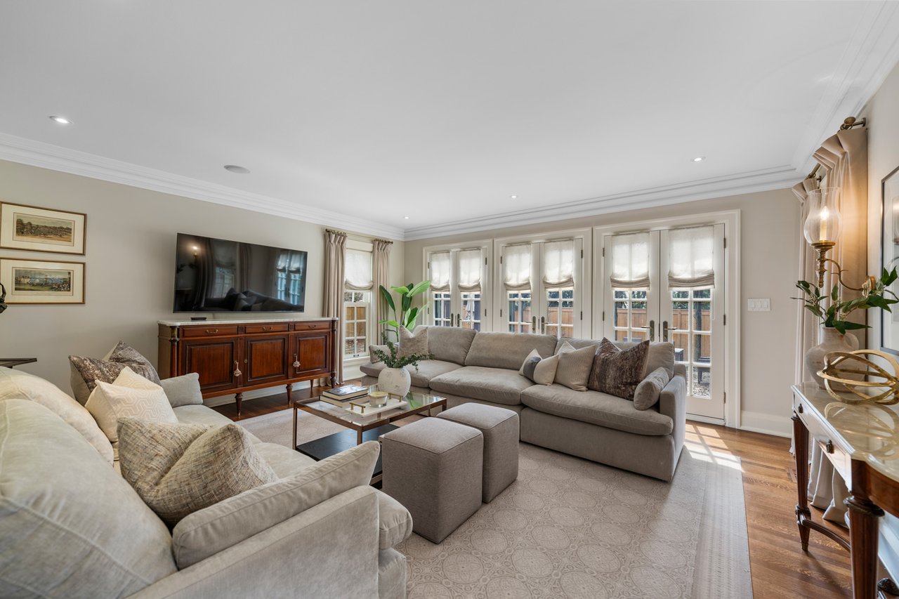 Situated on a prime 60.04 x 138.66 ft lot in one of Toronto's most sought-after neighbourhoods, this elegant and spacious home offers exceptional scale, comfort, and functionality. Featuring a 7-car driveway and 2-car garage with direct interior access, this residence is ideal for growing families and entertaining. A grand foyer welcomes you into beautifully proportioned principal rooms. The formal living room features rich hardwood flooring, large windows, and a wood-burning fireplace, with double glass doors for added privacy. The formal dining room showcases classic panelled walls and connects seamlessly to the kitchen-perfect for hosting. The chef-inspired kitchen is equipped with Sub-Zero paneled fridge/freezer, Wolf 6-burner gas stove and wall oven, and a large centre island with ample storage. A bright breakfast area overlooks the backyard and flows into the sunken family room with hardwood floors and three French doors opening to a private outdoor retreat with dining and lounge areas. The main floor also includes a mudroom with garage and side entrance access, a powder room, and generous storage. The lower level offers a spacious recreation room, 3-piece bathroom, large laundry room, and multiple storage areas. A unique half-level Great Room with soaring ceilings, panelled walls, and a walk-out to a large private terrace provides additional living and entertaining space. The upper levels feature well-appointed bedrooms, including a primary retreat with extensive built-ins, walk-in closet, and 5-piece ensuite. Additional bedrooms offer custom storage, with one featuring its own ensuite, plus a shared family bath. The third floor includes a versatile sitting area, bedroom, home office, and 3-piece bathroom. A rare opportunity to own a refined family home in the heart of Forest Hill, close to top rated schools, parks, and amenities.