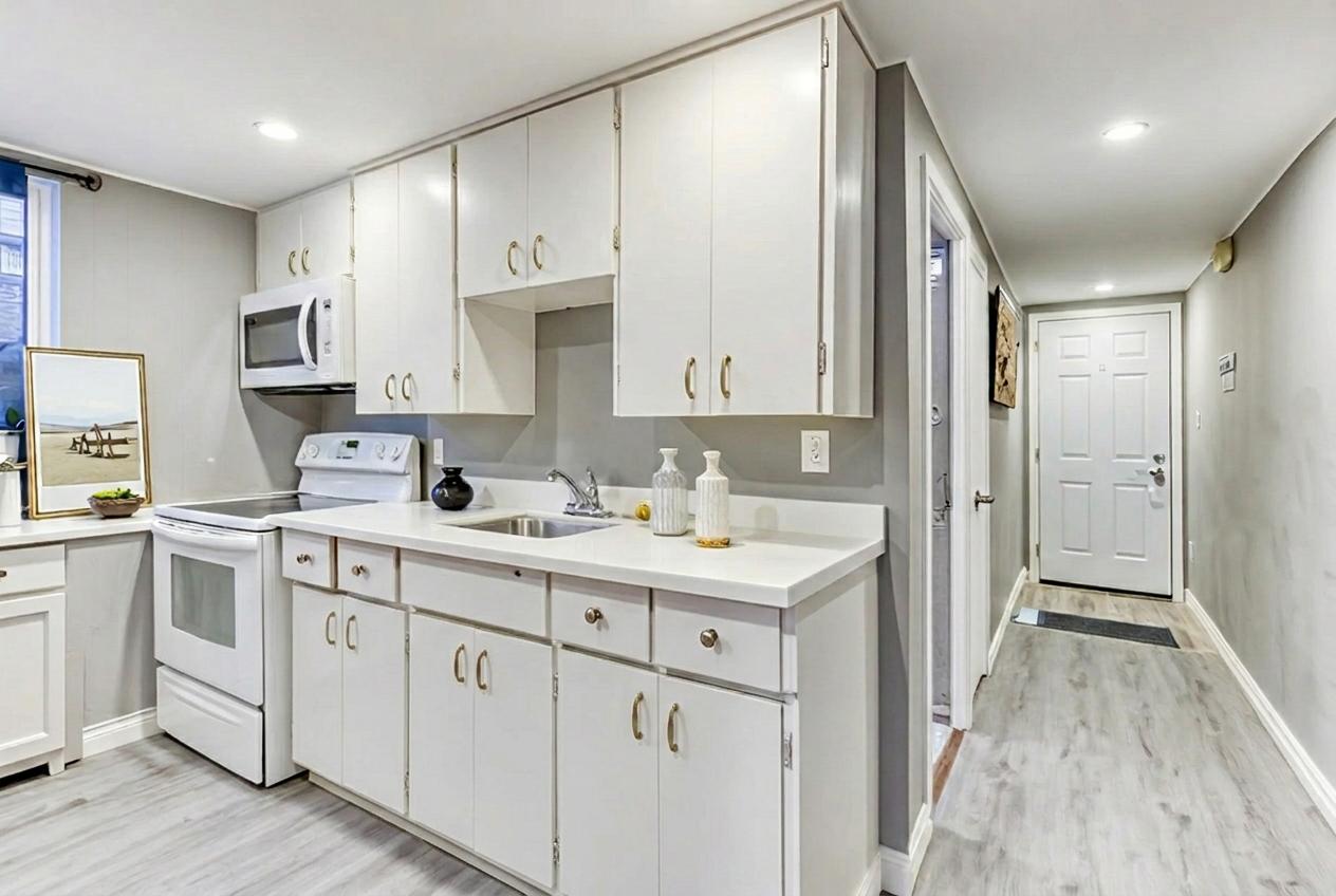 Spacious 1-bedroom, 1-bathroom basement apartment available April 1st. Featuring large windows throughout, this bright unit offers a separate walk-up entrance and a carpet-free interior. Enjoy a generous living area and a well-sized bedroom. Conveniently located close to schools, shopping, public transit, restaurants, and other amenities. Rent includes all utilities, and one parking space is included.