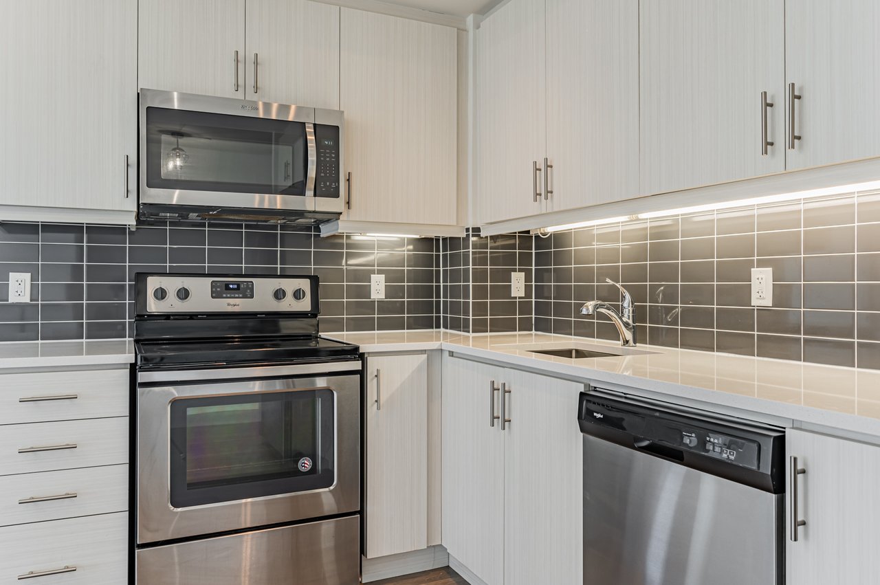 The corner unit you've been waiting for. Rarely available West exposure with oversized locker and an excellent parking spot location included. 9ft ceilings and open concept Living/Dining/Kitchen area with Stainless Steel Appliances and tasteful light fixtures. Conveniently located close to