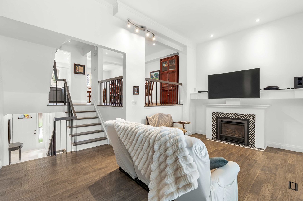 Welcome To This Multi-Level Townhome Is Located In Highly Desirable Rockwood Village. This Home Boasts Stylish Design And Modern Finishes. Inviting Foyer From A Uniquely Appointed Gas Fireplace Soaring 12 Ceilings/Feature Wall Accent, Walkout To Private Backyard Setting. The Separate Dining Room Appointed With Iron Railing Overlooks This Stunning Sun-Drenched Living Room, Modern And Recently Finished Solid Wood Shaker Style Kitchen With Quartz Countertops And Backsplash And Spacious Breakfast Area, S/S Appliances, Enjoy The Warmth Of Subtle Scraped Oak Flooring And Pot Lights Throughout This Home. Upper Level Offers Primary Bedroom With A Walk-In Closet And 3pcs En-Suite, 2 Additional Spacious Bedrooms, And Fully Finished Lower Level This Home Boast Several Upgrade And Unrivaled Appointments. Surrounded By Greenery And Garnet Wood Dog Park/Tennis Courts/ Scenic Etobicoke Creek, Walking Distance To Primary And Secondary School, Public Transit And Easy Access To Highways 427 QEW & 401. A Must See!
