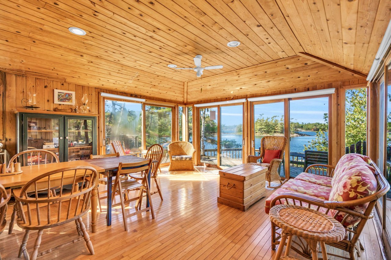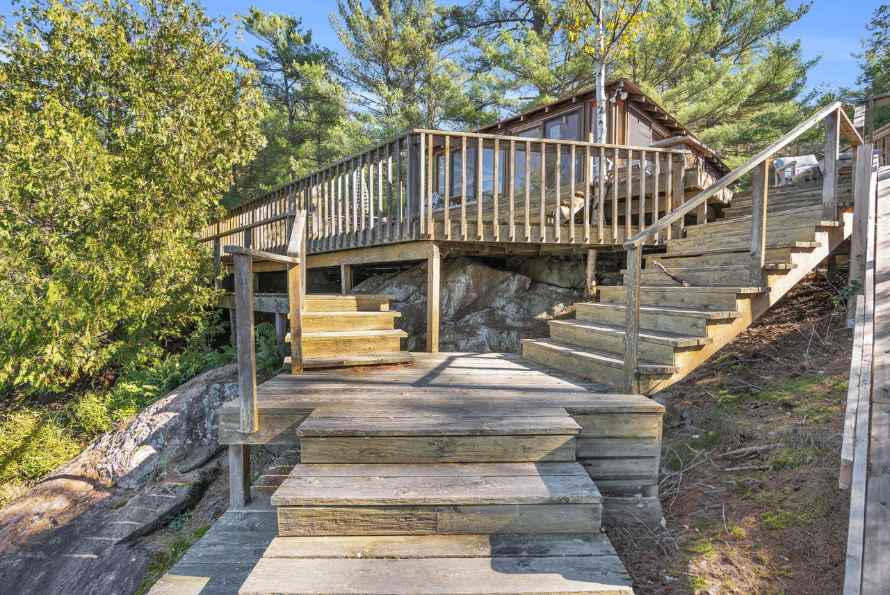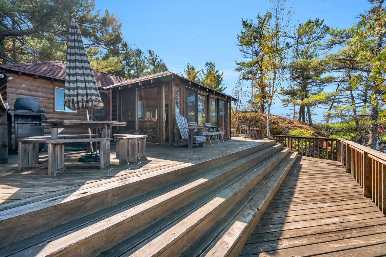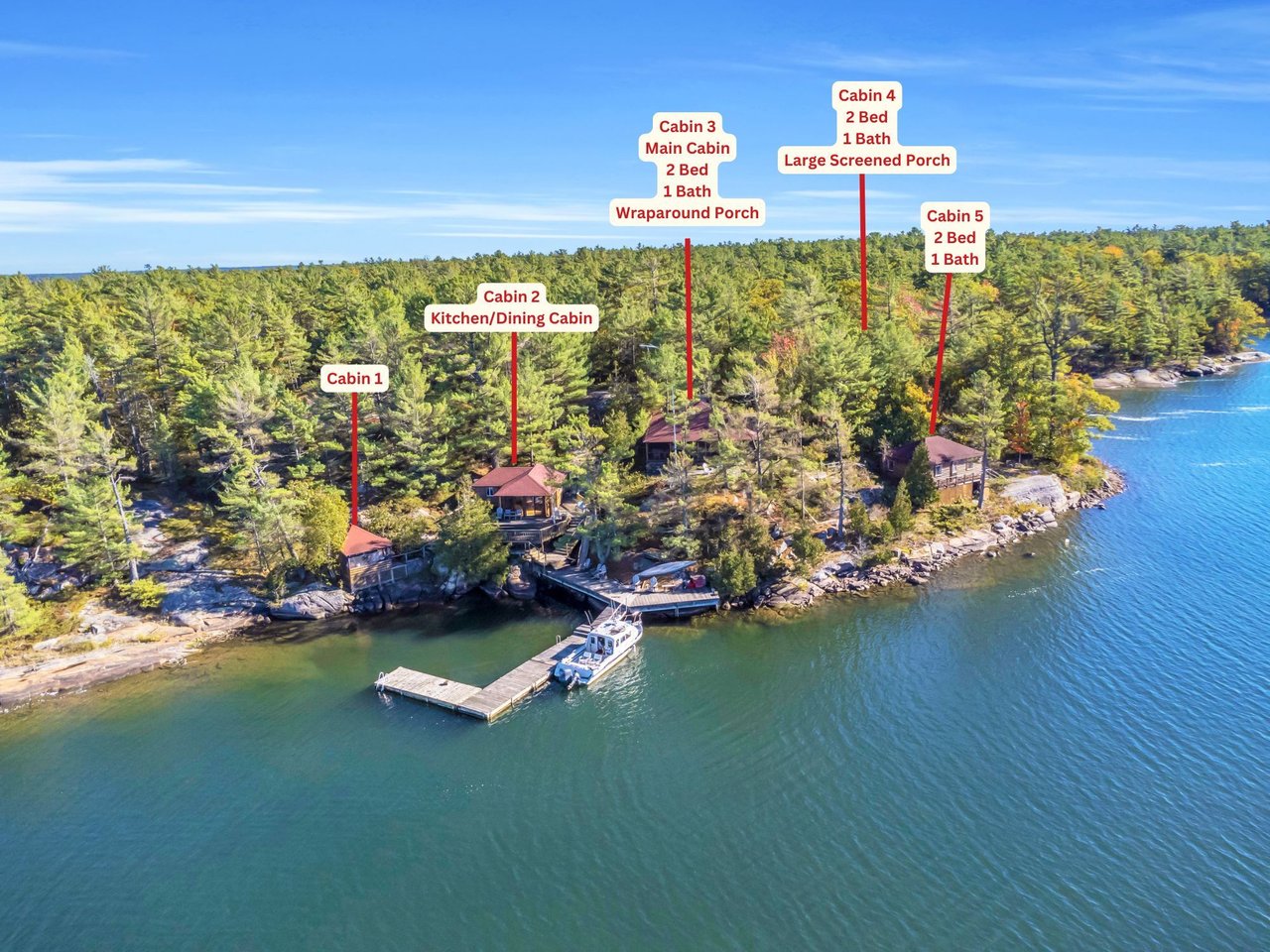 An extraordinary opportunity awaits on 9-A30 Island-5.5 acres of private, potentially redevelopable land in the heart of iconic Pointe au Baril. Surrounded by Crown land and just a 4-minute boat ride from the marina, this rare island offering boasts 960 feet of combined shoreline with exposures on both sides-ideal for capturing sunrise and sunset views and maximizing future design potential. Currently with 7 structures-including multiple 2-bed, 1-bath cabins, a main cottage with wraparound porch, a grandfathered waterside kitchen/dining cabin, and two utility sheds (one with laundry)-the island is already serviced with hydro and running water. All structures are being sold as-is with no representations or warranties. The real value lies in the land. With flat, usable topography, stunning long views, and a newly refreshed sandy beach, this property is primed for a high-end renovation project or a complete teardown and custom build of a showpiece cottage or family compound. Located minutes from the historic Ojibway Club in one of Georgian Bays most coveted and scenic boating areas, this is a generational opportunity to create a legacy retreat or luxury income asset. Whether you're a seasoned investor, luxury builder, or visionary buyer-this is a blank canvas in an unbeatable location.
