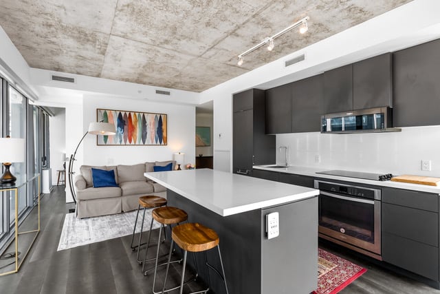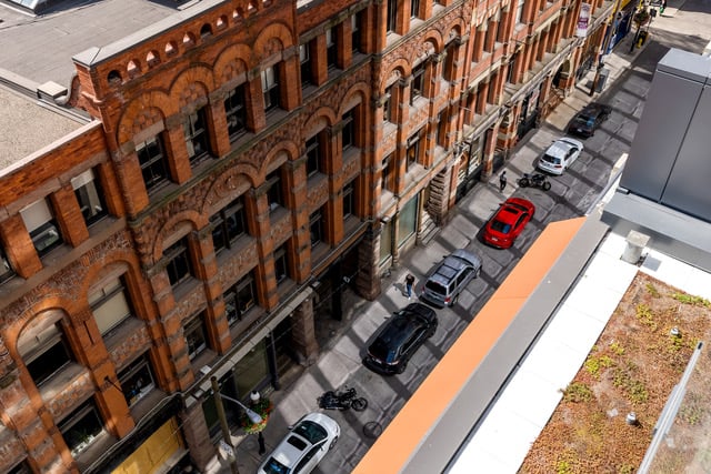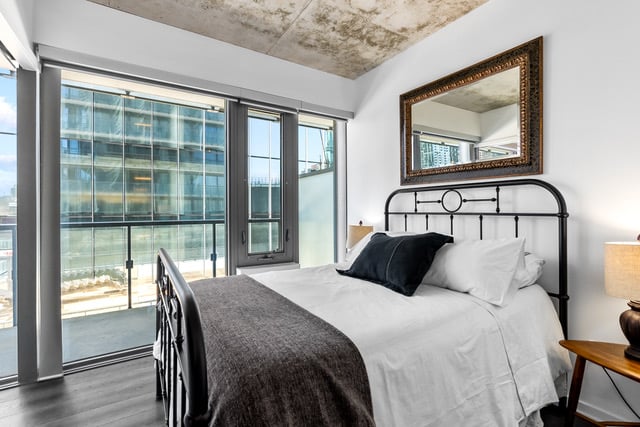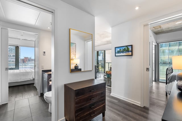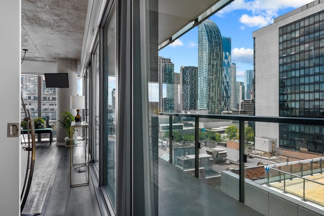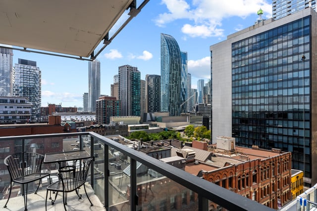 Luxury corner suite in the iconic St. Lawrence Market district. Sun-drenched split-bedroom plan with floor-to-ceiling windows and stylish finishes throughout. Premium upgrades include automated blinds, heated bathroom floors, and a chef-inspired kitchen with extended island featuring breakfast seating, pantry storage, and generous prep space. Exceptional 298 sq.ft. wrap-around balcony with sunny south-west exposure. Steps to Union Station, Financial District & waterfront.