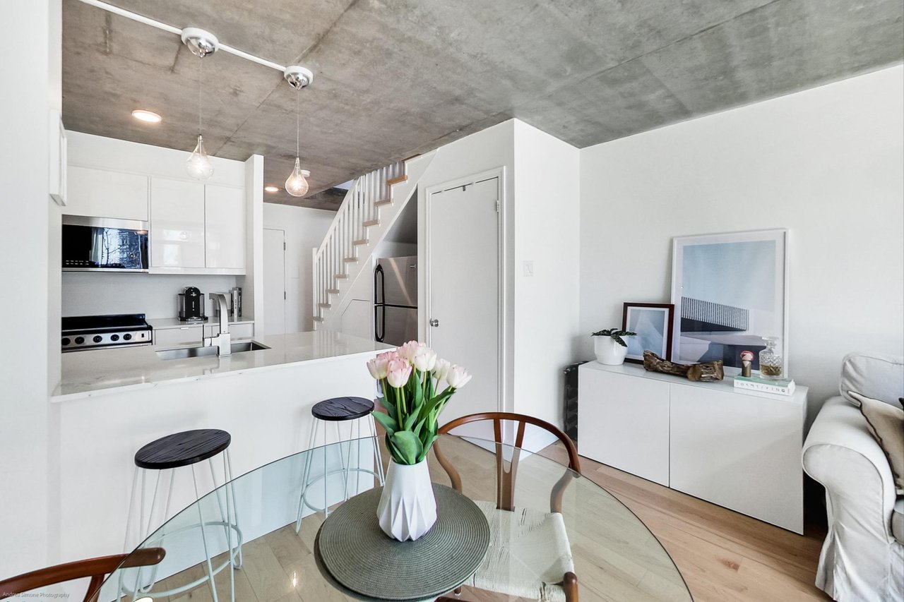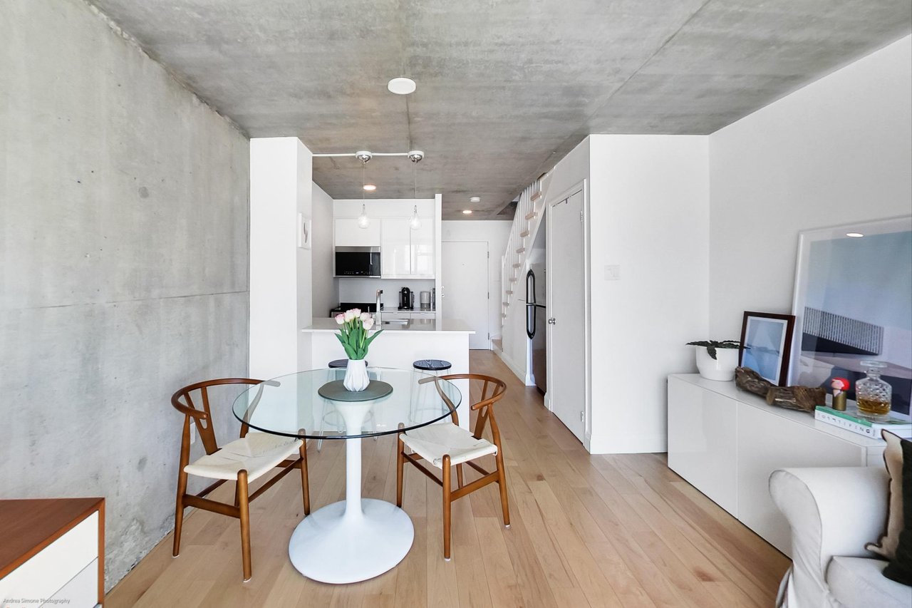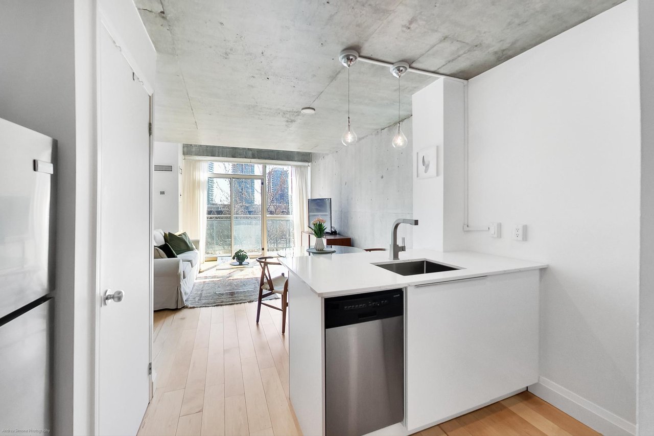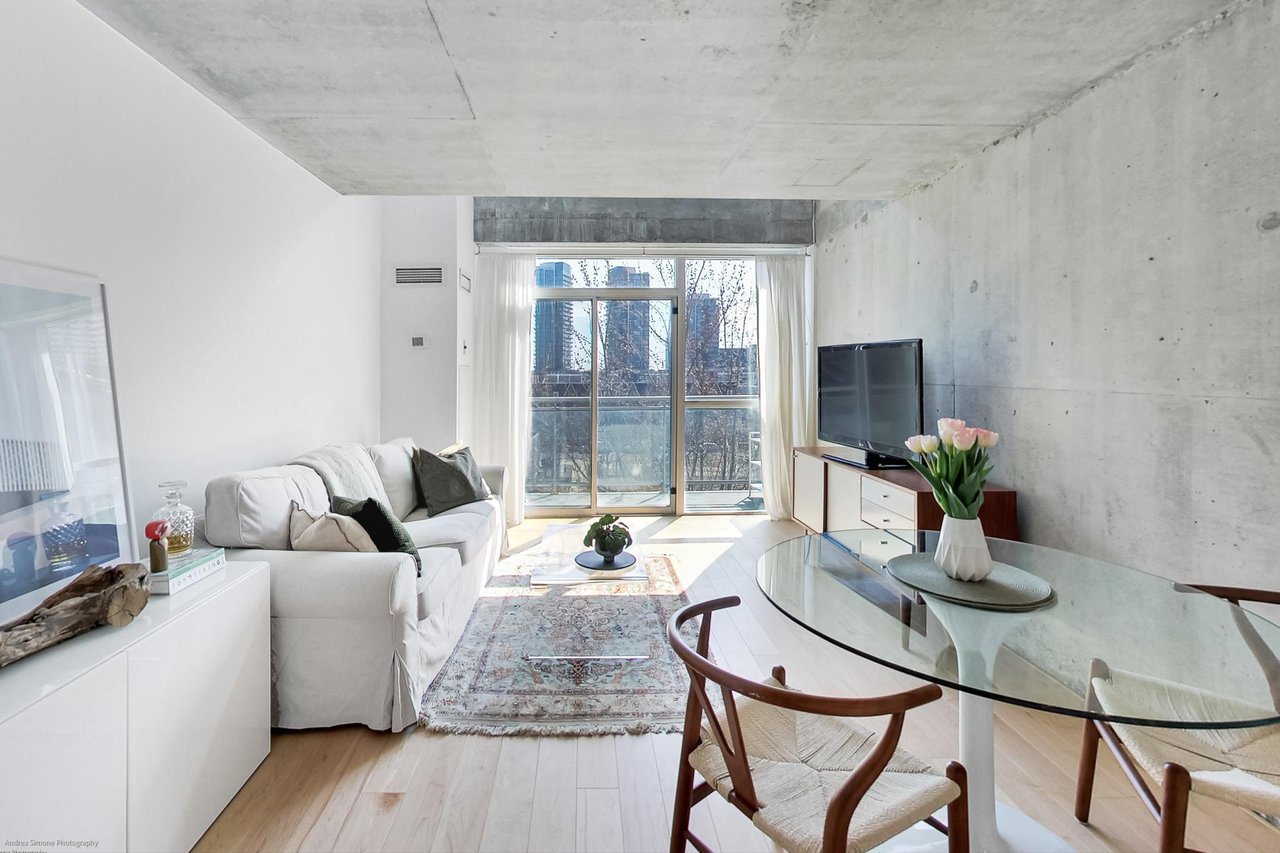 Welcome to 954 King St. W, A Completely Renovated Two Storey Loft In A Boutique Architectural Gem in the Heart of King West/Niagara. Newly Renovated Loft With Double-Height Ceilings, Exposed Concrete Walls, And Wall-to-Ceiling Windows With South Views Overlooking Massey Harris Park! This Bright and Spacious 1 Bedroom + Extra Large Den, 1.5 Bath Unit Features a List Of Upgrades Including, Fully Upgraded Kitchen & Baths, Hardwood Floors Throughout, Remote-Control Blind, New Washer/Dryer, New Lighting. The Main Level Opens Into an Airy, Open Concept Living/Dining, Powder Room and Chef's Kitchen With a Well-Appointed Breakfast Bar and Walk Out To South Facing Terrace, Ideal for Entertaining. Upstairs, You'll Find A Spacious Bedroom and Den, Generous Closet Space, Ensuite Spa Like Bath and Laundry. Storage Conveniently Located Ensuite. Parking Included! Building Comes With Incredible Amenities: Gym, Party & Games Room, Theatre Room & Visitors Parking. Terrific Value As Maintenance Fee Includes All Utilities. 10/10 Prime King / Queen West Location - Steps To The Best Toronto Has To Offer. Walk To The Best Restaurants, Cafes, Bars, Shopping (The Well), Transit (King Streetcar at Your Door), & Green Space Just Across The Street.