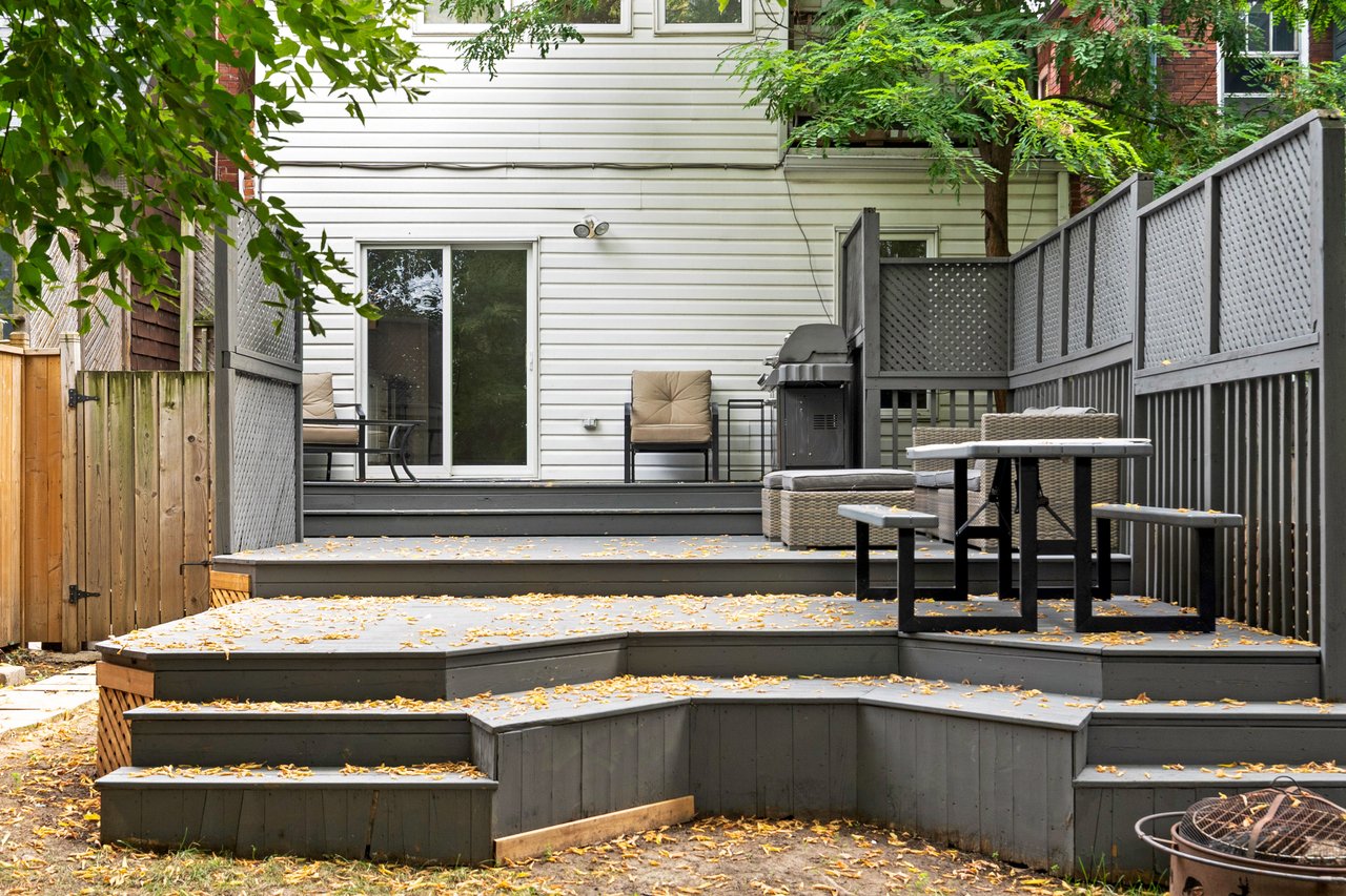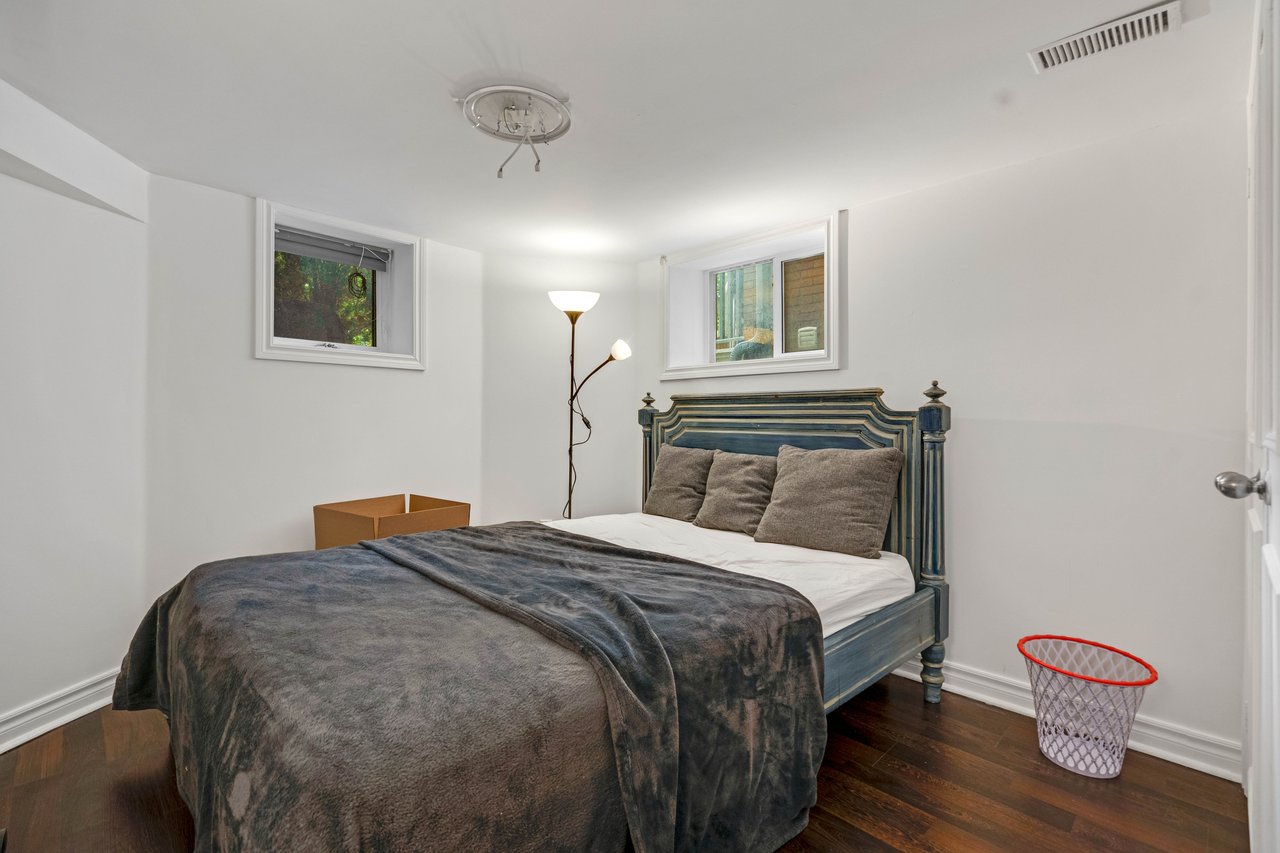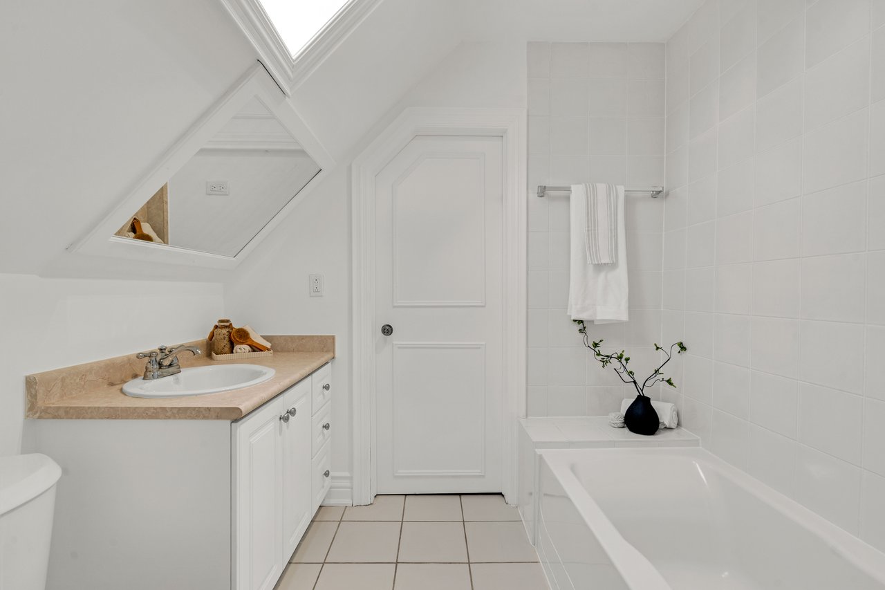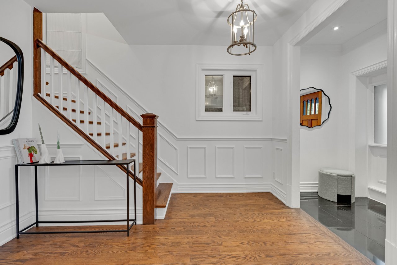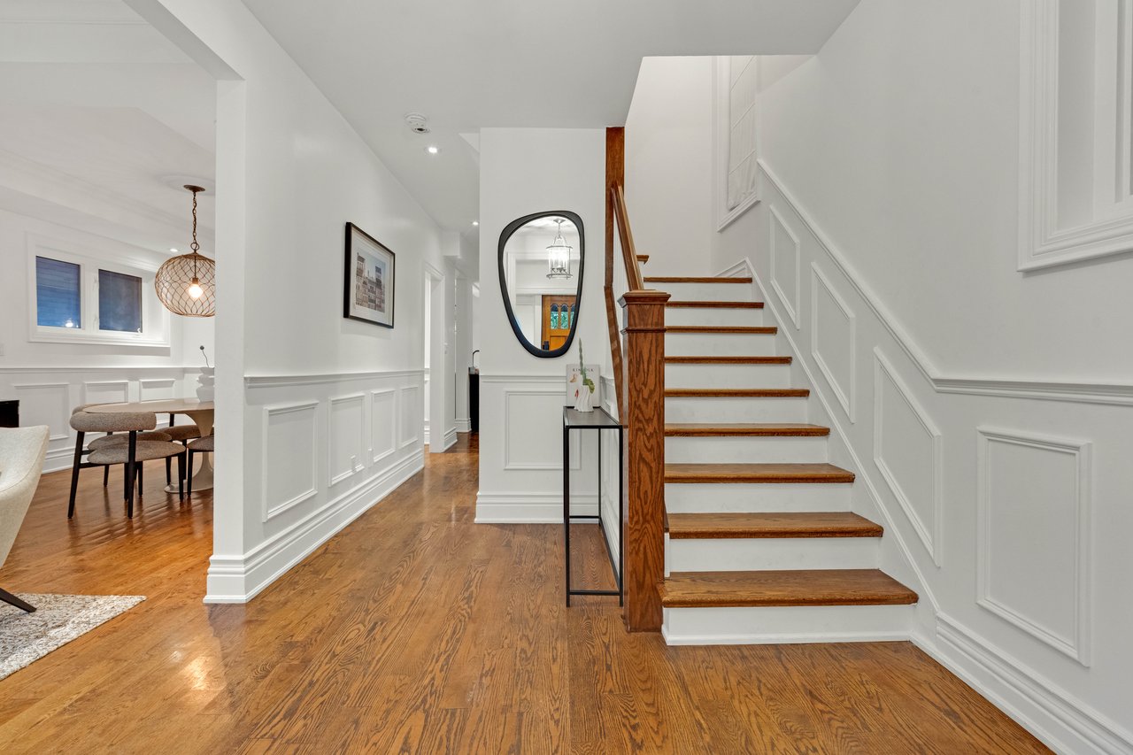 Welcome to this beautiful and updated family home in the prestigious Casa Loma neighbourhood. Blending classic Victorian charm with modern upgrades, this residence offers elegance, warmth, and convenience in one of Toronto's most sought-after communities. A tiled entryway with hall closet leads into a spacious living and dining area featuring dark hardwood floors, crown moulding's, chair rails, and wainscoting throughout. The living room includes a fireplace and large windows, seamlessly connected to the Victorian-inspired dining room with chandelier. The custom kitchen boasts granite countertops, built-in storage, a centre island with bar seating, and high-end appliances including a GE Profile fridge, Bosch dishwasher, GE electric stove/oven, and crown hood fan. A breakfast area with window and a walkout to the deck and private backyard complete this level. A convenient 2-piece bath and access to the basement are located off the central hallway. Upstairs features hardwood flooring and a primary suite with walk-in closet, a 6-piece ensuite surrounded by windows, and a walkout to a private deck. A second bedroom offers a fireplace, windows, and access to an adjoining room ideal for an office or sitting area. A 3-piece bathroom completes this level. The top floor, accessible via stairs with a charming skylight, includes two additional bedrooms with closets and windows, connected by a Jack-and-Jill 4-piece bathroom with skylight. The lower level features a side entrance, recreation room with windows, additional bedroom, 4-piece bathroom with laundry, storage areas (including under-stair storage), and utility room. Dark hardwood flooring adds warmth to the space. Situated steps from Casa Loma, local parks, playgrounds, shops, restaurants, and public transit, this home is perfect for families seeking a balance of heritage, comfort, and accessibility.