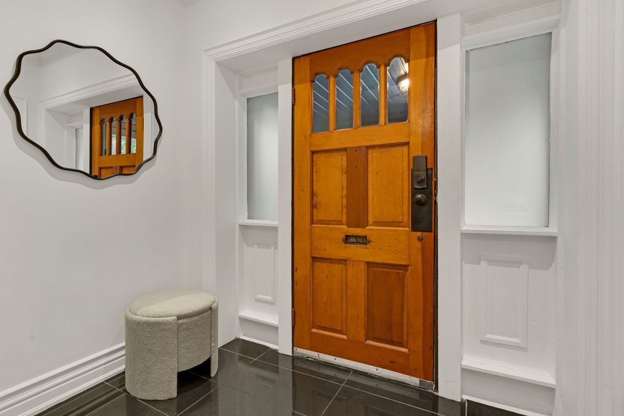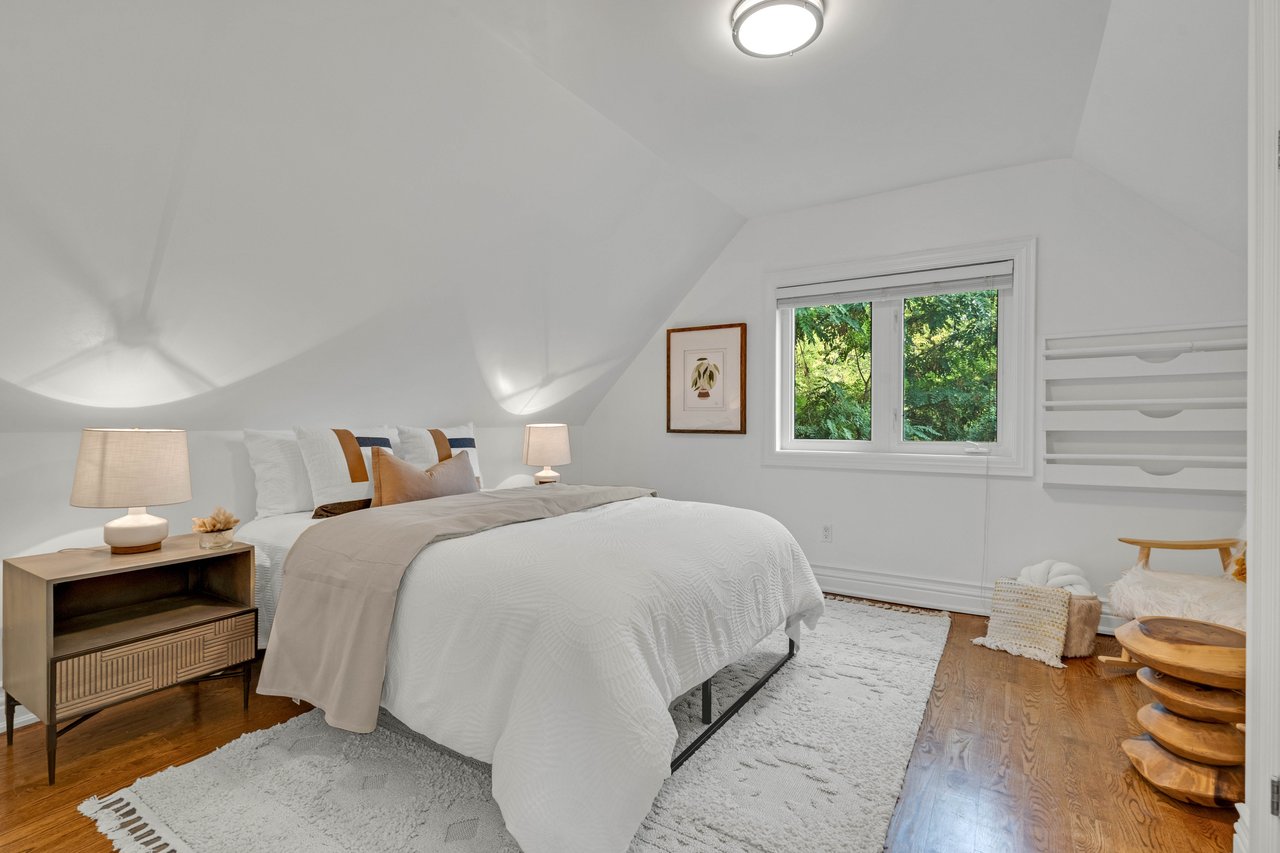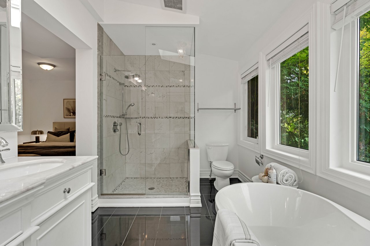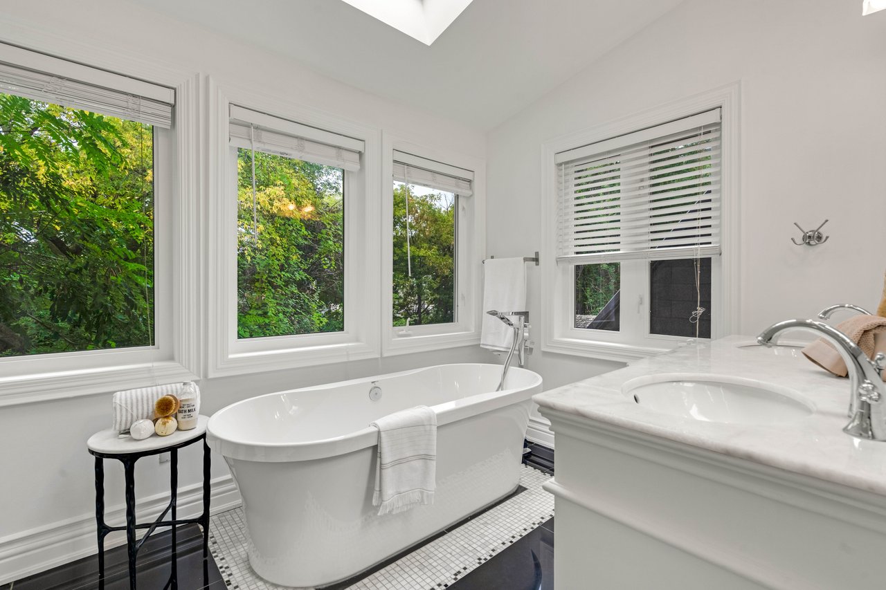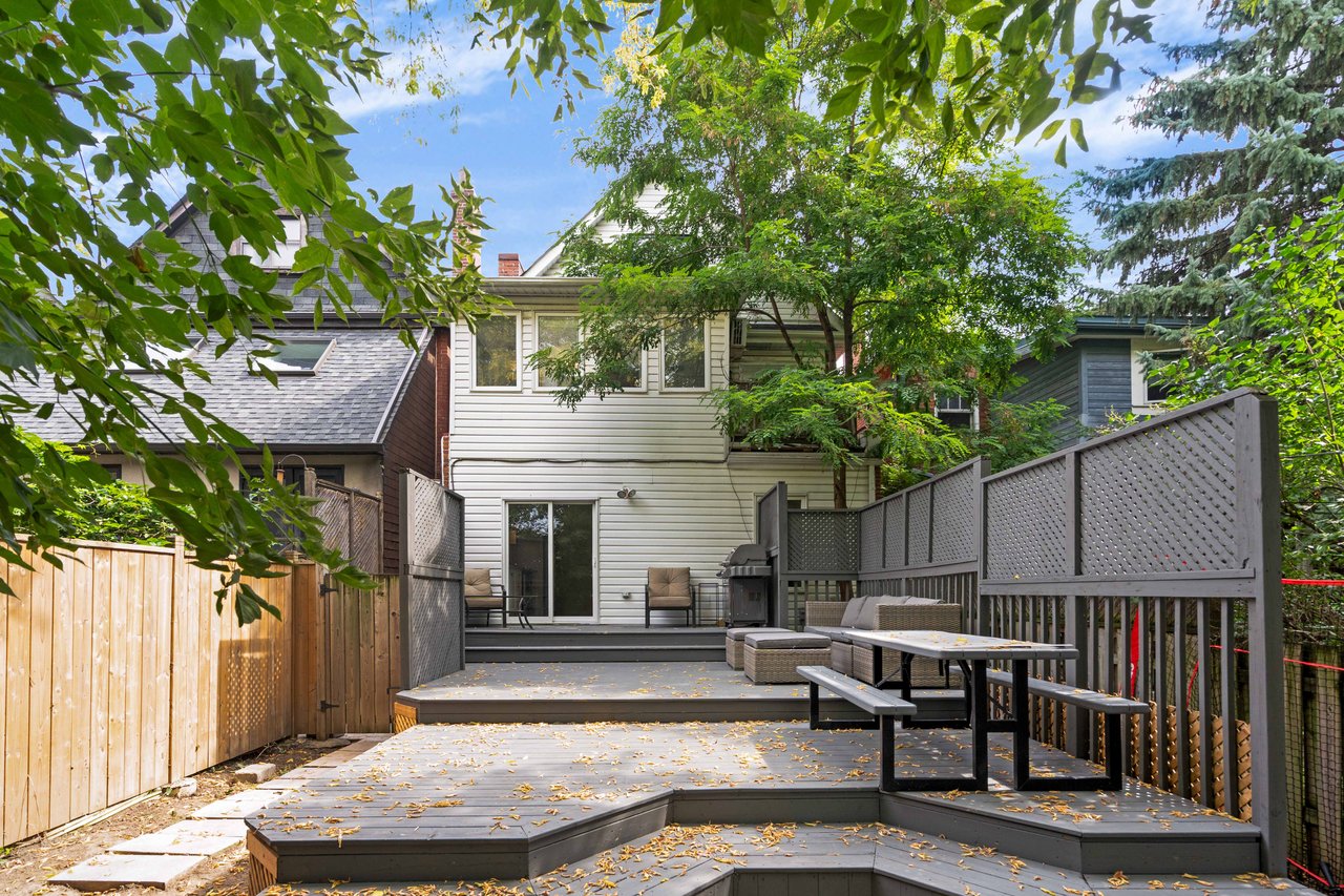 Welcome to this beautiful and updated family home in the prestigious Casa Loma neighbourhood. Blending classic Victorian charm with modern upgrades, this residence offers elegance, warmth, and convenience in one of Toronto's most sought-after communities. A tiled entryway with hall closet leads into a spacious living and dining area featuring dark hardwood floors, crown moulding's, chair rails, and wainscoting throughout. The living room includes a fireplace and large windows, seamlessly connected to the Victorian-inspired dining room with chandelier. The custom kitchen boasts granite countertops, built-in storage, a centre island with bar seating, and high-end appliances including a GE Profile fridge, Bosch dishwasher, GE electric stove/oven, and crown hood fan. A breakfast area with window and a walkout to the deck and private backyard complete this level. A convenient 2-piece bath and access to the basement are located off the central hallway. Upstairs features hardwood flooring and a primary suite with walk-in closet, a 6-piece ensuite surrounded by windows, and a walkout to a private deck. A second bedroom offers a fireplace, windows, and access to an adjoining room ideal for an office or sitting area. A 3-piece bathroom completes this level. The top floor, accessible via stairs with a charming skylight, includes two additional bedrooms with closets and windows, connected by a Jack-and-Jill 4-piece bathroom with skylight. The lower level features a side entrance, recreation room with windows, additional bedroom, 4-piece bathroom with laundry, storage areas (including under-stair storage), and utility room. Dark hardwood flooring adds warmth to the space. Situated steps from Casa Loma, local parks, playgrounds, shops, restaurants, and public transit, this home is perfect for families seeking a balance of heritage, comfort, and accessibility.